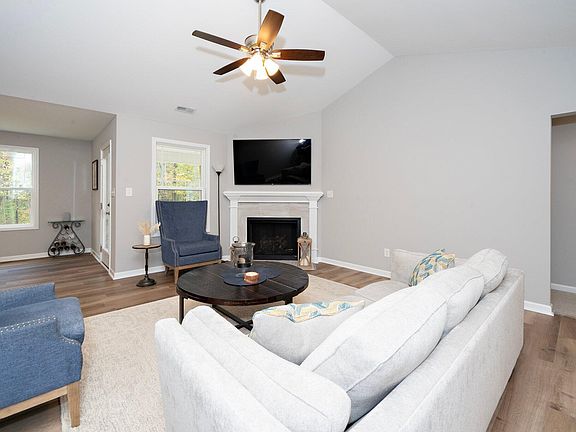 This stunning, less than three years young home is now vacant, deep cleaned, and ready for a new family just in time for spring! Walk through the foyer and into the large living room with cozy fireplace and views of the wooded backyard. Adjacent is the massive dining room, open to a beautiful, fully equipped kitchen. Stainless steel appliances, granite countertops, soft close shaker cabinets and more! The spacious laundry room with cabinets and enormous pantry adjoin the space leading out to the finished 3 car garage. This split bedroom plan boasts a gorgeous primary suite with tray ceilings on one side of the home. The two other generously sized bedrooms, a bathroom, and multiple storage closets are located on the other side of the home. This perfect one level floorpan works wonderfully for anyone ranging from first time buyers, families, or someone looking to downsize. The large deck overlooking the woods filled with wildlife makes for a very peaceful retreat! The wooded and private back yard is over acre, with a small creek running through. Close to highways, downtown districts, shopping, restaurants, Smithfield Outlet Mall, and the brand new mega-project of Eastfield Crossing! This property conveys with all kitchen appliances, washer/ dryer, garage refrigerator, and lawnmower with an acceptable offer. Lender incentives offered with use of our preferred lender!