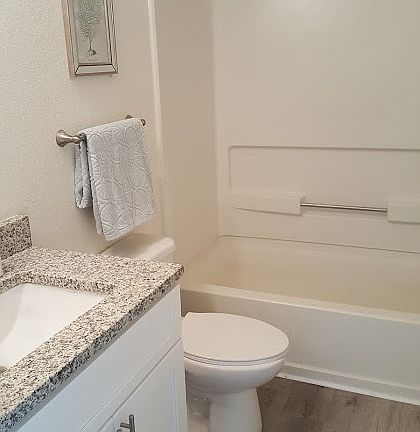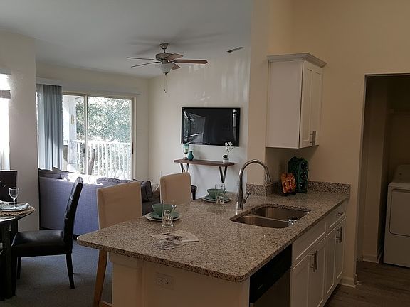 This beautiful 1 bedroom 1 bathroom available is for rent immediately located at The Village at Town Center. The unit has been completely renovated and comes with brand new white cabinets, granite counter-tops, grey hardwood flooring in the kitchen and bathroom, upgraded grey carpet throughout the living-room and the bedroom. Ceiling fans are also included as well as brand new light fixtures and faucets. The kitchen comes with all new stainless steel appliances and new oversize washer and dryer and a large patio to sit out and enjoy a relaxing day. Village at Town Center is a pet friendly, quiet neighborhood which includes a beautiful pool, newly renovated tennis court and a gym. Please contact Abigail at 863-420-1654. Tenants are responsible for all utilities such as water, electric, and cable & internet.