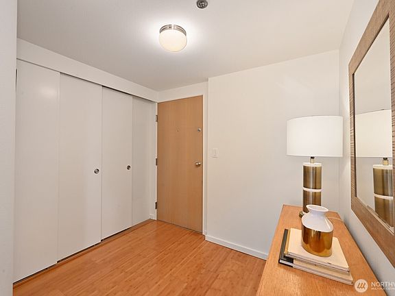 Amazing corner unit with views of Olympic Mountains, and Puget Sound. Beautiful 2 bedroom, 1.75 bath condo with lovely bamboo floors throughout. Great circular floor plan for easy living! Spacious kitchen with stainless steel appliances. Primary bedroom with built in closet to optimize space & ensuite bath. Secure parking space(#188) plus storage unit (#703). Arbor Place elevates everyday living with resort style amenities include 24/7 lobby concierge, 4 view decks (floors, 25,27,28), owner's lounge/ club room, fitness center, indoor pool, hot tub, and sauna. Lovely and responsible HOA. Pet friendly. No Rental Cap. Steps away from the beautiful revitalized Seattle waterfront. This is the one you've been waiting for!