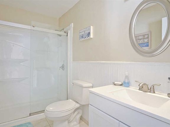 Prime Location! Situated in a quiet neighborhood and only 3 blocks to the beach and boardwalk you will find this updated 3-bedroom, 1 bath condo. Enter to find an open plan featuring Pergo floors throughout and a remodeled kitchen to include a 12-foot peninsula with seating, all new stainless steel appliances (Whirlpool), and granite countertops. The living room hosts 2 sofas (one of which is a queen pull-out) adding additional sleep space to this already spacious unit. The master bedroom offers a huge double closet that expands the length of one wall. Two additional bedrooms will accommodate even more family and friends. Completely renovated, the bathroom has a full-size walk-in shower with a frameless lead glass door, updated vanity with storage, and a brand new toilet. Step out back to your oversized deck with plenty of room for a table and chairs, sectional and a grill. Step down to the fenced backyard where you will find a brand new outdoor shower. Additionally, you will appreciate the fact that this unit comes partially furnished to include the couches, all beds, selective beach decor, the wicker sectional with cushions on the deck, TV, surround sound, 4 leather bar chairs, and 2 off-street parking spaces. This two-unit building shares maintenance/bill/insurance with the unit upstairs. Perfectly located in Wildwood with everything just minutes away!