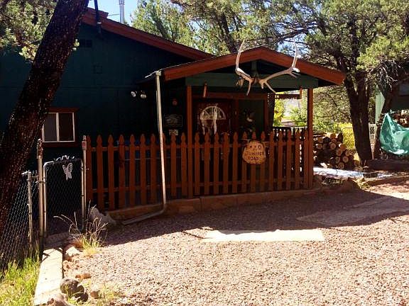 Fantastic fenced corner lot perfect for your horses or pets located close to national forest. This cozy cabin has been updated and well maintained. Two nice size bedrooms on main level and large sleeping area in loft for guests. Covered deck with great views and this quiet location is perfect for your weekend getaway.