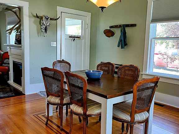 This beautiful victorian cottage sits on a large corner lot. A white picket fence and a wrap around porch greet you on your way to the door. Completely remodeled 4 bedrooms and 2 bath, one on each level Full of charm, this home is unique with original inlaid flooring in the dinning room and wide trim throughout. New flooring on the rest of the main level, including the kitchen as well as new countertops, sink, and stainless steel appliances, adding a modern update to the farmhouse style kitchen. Upstairs are refinished hardwood floors. A walk in closet off the primary bedroom. Laundry hookups on both levels. Central heating and air as well as an updated breaker box.Large fenced in back yard and a garden shed out back. The outside of the home was just recently painted as well. Mechanicals located in a partial unfinished basement.
