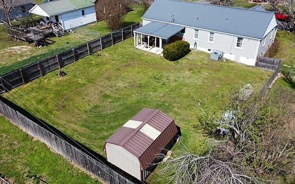 "Relax You're Home!" - Open Design Brick Home in town w/fenced rear yard & covered patio...Relax Time! - Originally a 3 BR, but remodeled to create a more OPEN SPACE. Now a 2BR, 1 bath home conveniently located within walking distance to the city park area & the town square. Cute house w/metal roof & painted gray brick. Remodeled kitchen w/vintage 66" wide cast iron double washboard farmhouse sink. Bathroom remodel of the flooring, walls & vanity. Replaced windows & HVAC system (8 years). Original Hardwood Floors! Attached garage 17x16. Patio awning & back patio provides outdoor space to grill, relax & watch the kids or pets play. All appliances stay, curtains and patio furniture.