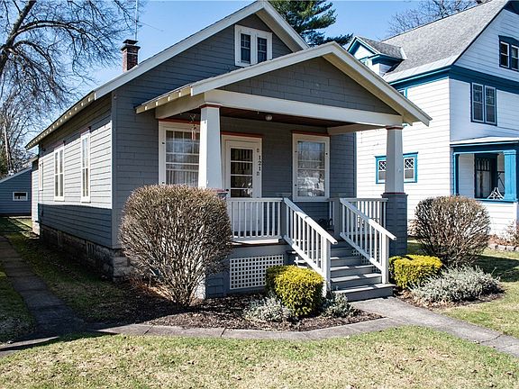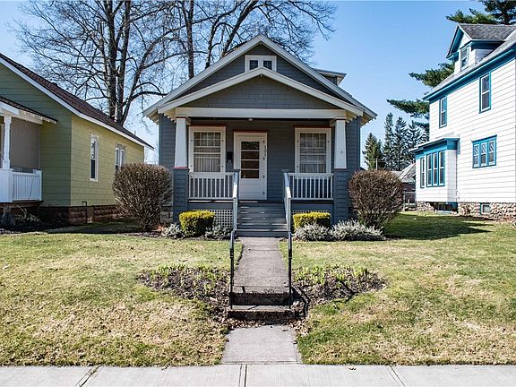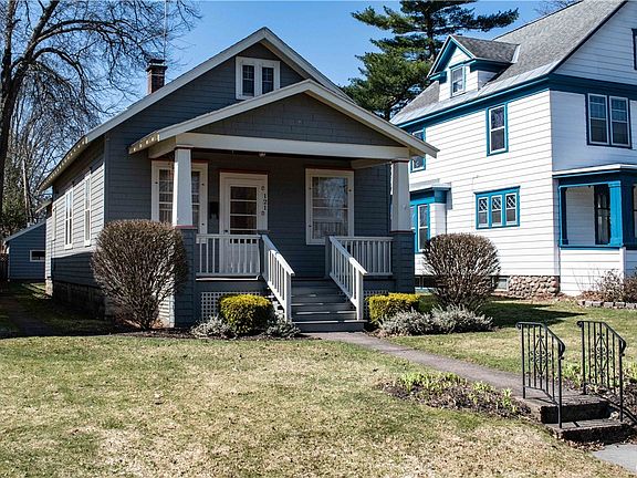 Rome Quiet Bungalow! This charming home is just waiting for you to move right in! Sitting on a quiet city street, with a detached garage, and an open front porch, you will be pleasantly surprised when you walk in. This cute little bungalow offers two bedrooms on the first level, and a third bedroom in the full walk up attic. The galley kitchen has Corian counters, stainless appliances and updated cabinetry with plenty of space. Neutral wall to wall carpeting in the dining room, living room, and office/sunroom, plenty of natural lighting, and soft tones makes it easy to picture your prized possessions in each room. A bright and modern bathroom with tile floors, a corner shower and vessel sink on the first floor between both bedrooms. The walk up attic is off one of the downstairs bedrooms, and can be completely finished off for plenty more sleeping or living area. Enter the detached garage off a quiet back alley, and take a short walk into the back entrance, where you can go up into the kitchen, or down to the basement. Central air, newer forced air furnace, and a full basement. Tons of value for the price!