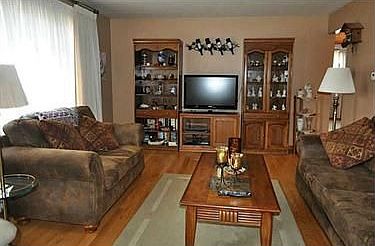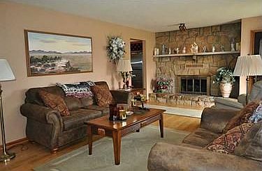 Move in condition. Beautiful formal dining room addition with cathedral ceiling and sky lights, hardwood flooring in the living room w/ Impressive stone fireplace! There is a finished lower level, private patio & covered patio for summer entertaining. Natural stone aggregate custom flooring in the garage. This is a real must see !!