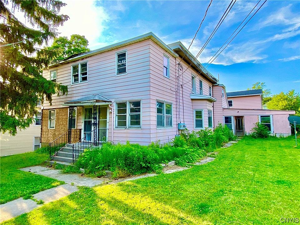 FIRE SALE!!! Investors; this may be the best long term hold that hits the Auburn, NY market this year. This 3 unit home has almost 3,000 square feet and a massive 24x24 two story garage and is priced at just $13 sq/ft. That is not even factoring in the value of the garage. The home was purchased through a private sale in January 2023 and was in the process of being remodeled. There was also new electrical wires installed throughout most of the home. The owners had renters ready to move in when there was a spontaneous combustion fire structure fire due to cleaning rags that was quickly extinguished, thanks to the great professional efforts from the local fire department. This home offers 1, 2 and 3 bedroom units, all with formal dining areas off each kitchen. The bedrooms are all great size too. There should be no doubt that any experienced home remodeler/rehabilitator can tackle this project and be very happy with the results and profit/rental income on the back end.