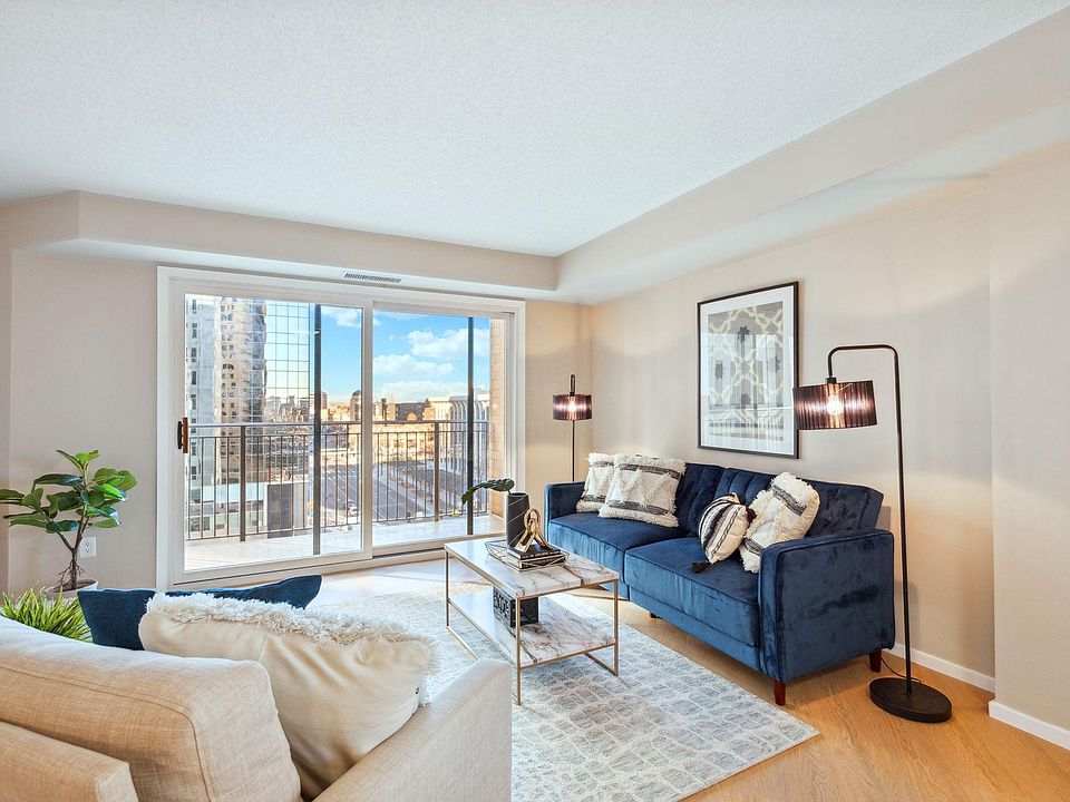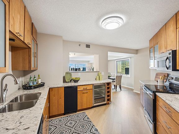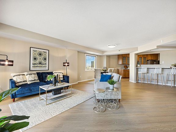 This upscale condo promises a lavish and cozy lifestyle, boasting new hardwood floors, freshly painted, modern kitchen, and a prime location with stunning downtown views. Residents can enjoy an array of amenities, including an exercise room, sauna, hot tub, spacious patio, and outdoor pool. The owners suite offers ample storage with walk-in closets and a private bathroom. The generously sized living room, flooded with natural light, serves as a central gathering space. Nestled in a desirable area with direct access to the skyway system, the condo ensures easy reach to shopping centers, restaurants, and entertainment venues.
