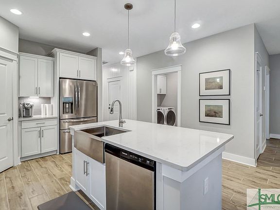 This beautiful home features 3 Beds, 2.5 Baths, and Separate Study; Open Concept Kitchen w/Dark Gray Cabinets, White Quartz, Tile Backsplash, SS-Whirlpool Range, Microwave & DW, Spacious Island with Pendant Lighting; Open Dining and Family Room with Tray Ceiling, LVP flooring and Cordless Window Blinds throughout; Owner Suite features Tray Ceiling w/ Fan; Double Vanity with Quartz, Glass Enclosed Tile Shower with Corner Bench, Spacious Walk-in and Linen Closet; Screed Lanai overlooking Serene Lagoon; 2-Car Garage with Auto Openers; The outstanding amenities include a Greg Norman signature golf course, tennis courts, large pool, fitness center, restaurant, pro shop and much more. Maintenance free living, with landscape and irrigation maintenance, termite protection, pressure washing and more. This property is just a short drive to Savannah-Hilton Head International Airport and Gulfstream, and minutes to Historic Downtown Savannah. Estimated completion Feb/Mar 2024