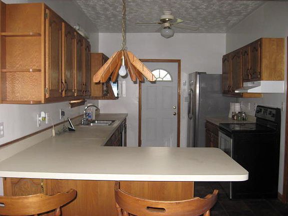 Older home with some updates. Newer windows, newer gas furnace, ceiling fans, stainless appliances in the kitchen. Roof is about l2 years old. Land goes to the top of the hill behind the house. Great starter home!!!
