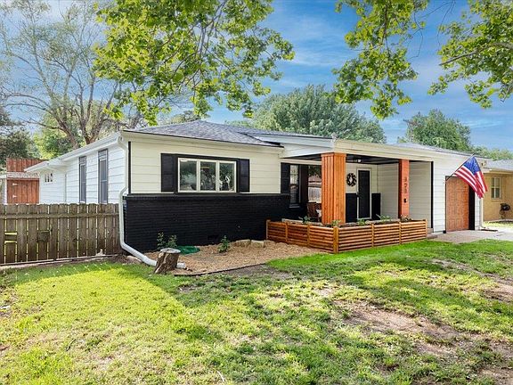 Come check out this completely remodeled 3 bedroom/2 bath home in Haysville! You are going to love it from the minute you drive up and see the amazing curb appeal with covered front porch and beautiful landscaping. The seller has thoughtfully designed it with a chic mid-century modern aesthetic. You will also love all the beautiful and unique personal touches within the home. The large, open kitchen has new quartz countertop, tile backsplash, eating bar, stainless steel Farmhouse sink, range, built in microwave and dishwasher. It also has a butcher block food prep area to add to the already ample countertop space. There is a large Primary suite with connected full bath and large walk in closet. There are two large living/family areas (one with a fireplace) and the open floor plan allows you to use the other living area as a playroom, large dining area or just another great place to relax. The two additional bedrooms have fresh paint and new carpet with an updated hall bath to share. All light fixtures (you will LOVE the ceiling fans) and flooring throughout the home are brand new! The home has two HVAC systems that have plenty of life in them with new programmable thermostats. The roof was replaced in 2022 per previous owner. The home has newly painted maintenance free steel siding and the windows are all metal wrapped. As an extra bonus, in the large fenced backyard, you'll find a charming he/she shed with plenty of room for your projects, extra parking or a great spot to watch the big game. The home is in close proximity to the elementary and middle schools so it will be a perfect fit for a family looking to move to the much desired Haysville area.