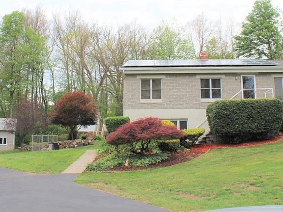 If you are looking for total privacy this Gorgeous Custom Built Post and Beam Contemporary Ranch is situated nicely on a 2.27 acre lot that abuts Echo Hill Apple Orchards. This home offers low maintenance as it has a stone/concrete block exterior. The grounds are beautifully landscaped with stone walls. The heated, oversized 2 car garage is a car or hobby enthusiast's dream, 1000 SF, high ceiling, 9' doors and work bench. There are plenty of outdoor spaces to entertain: large fire pit area, above ground pool with deck, large deck and a club house . The first floor has a large living room with custom brick work, beamed cathedral ceiling and built in bookcase, open floor plan to the kitchen that offers lots of cabinets and a newer counter top and back splash, nice sized bedroom and a master bedroom with access to the remodeled bathroom. The lower level has its own entry and is completely finished with a bedroom, family room, utility room and a kitchenette, great for an in-law apt.