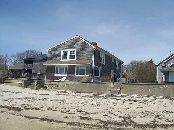 Beachfront!! This unbeatable location is just that, you walk out of your house, onto your patio, step onto the sand and then into the water. Incredible views of Buzzards Bay and the Islands, looking east and south, gorgeous sunrises and sunsets all year round. Three bedroom two bath home, master bedroom overlooking the beach, living room with fireplace, dining room, town water and sewer, natural gas, a very unique opportunity.