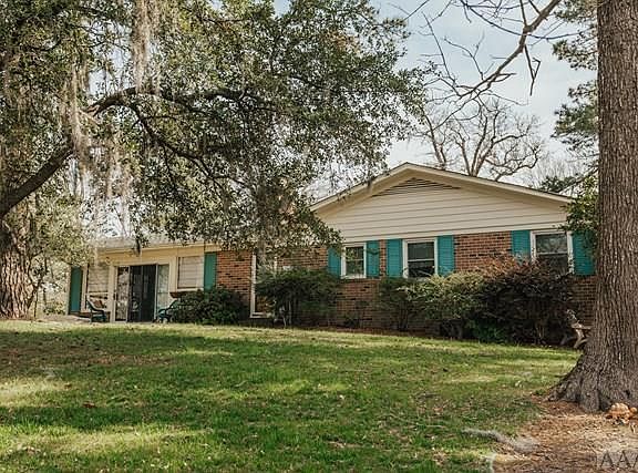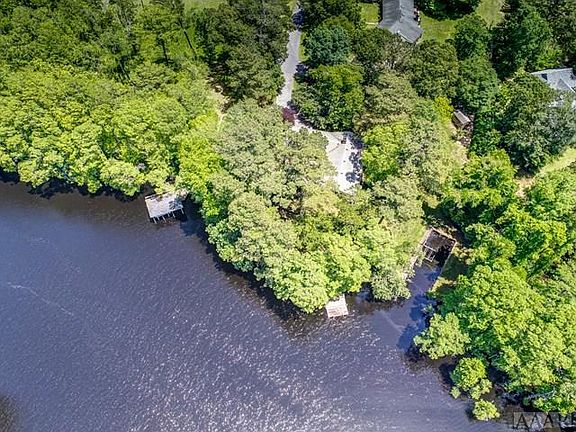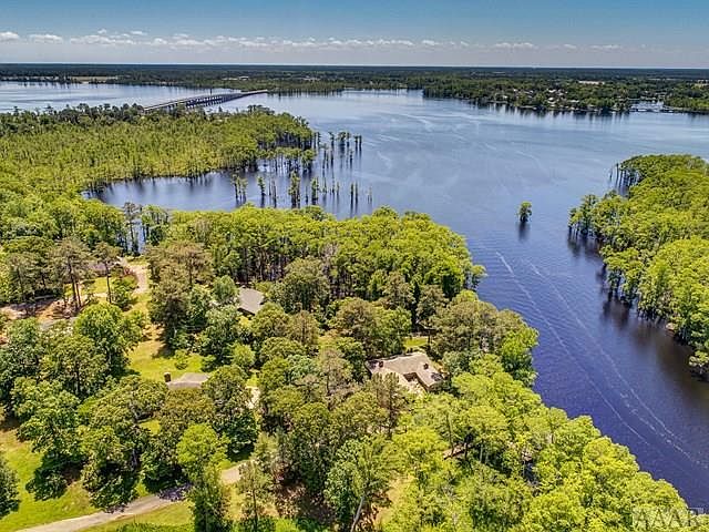 Paradise found! Sited on just over an acre in a park-like setting on high elevation waterfront on Vosses Creek just off Perquimans River.Lot has shade yet designed w/lots of windows for natural light. Formal entertaining areas,large kitchen w/Frigidaire appliances, waterview den w/fireplace. Laundry w/plentiful storage. Kitchen has generous cabinets,eat-in area, coffee bar. Master ensuite w/shower, waterview 2nd bedroom, hall bath w/dressing vanity, tub/shower. Room for 3rd bedrooom. Sunroom adjacent to courtyard patio. High elevation, FLOOD INSURANCE NOT REQUIRED. 20 minutes from Eliz. City.