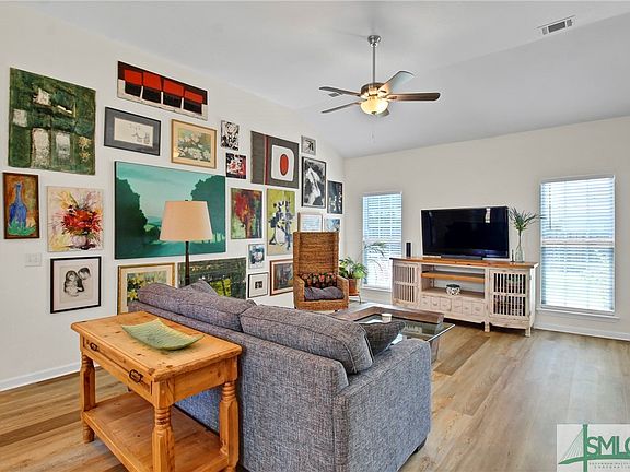 Welcome to the chic & modern one-story residence of 121 Willow Point Circle, located in the sought-after Willow Point community. This elegant home boasts 1674 square feet of living space, nestled on a generous 0.19-acre lot. Upon entering, you are greeted by an open floor plan flooded with natural light, accentuated by high ceilings and crown moldings. The kitchen features a breakfast bar, open breakfast room, pantry & chic black stainless appliances. The primary suite is adorned with trey ceilings, ensuite bath & leads to an added sunroom, providing a tranquil retreat. The opposite end of the home features the additional bedrooms & full bath. Conveniently located within the Highlands community, this home is within walking distance to Godley K-8 school & the gorgeous amenity center, with a state of the art gym, clubhouse, tennis courts & resort style pool & splash area! Just minutes from the Savannah International Airport, all of the great amenities in Pooler, Gulfstream, JCB & more!
