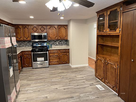 - Interior Features: Flooring- Laminate, Flooring- Tile, Wood Burning Stove, Flooring- Hardwood, Ceiling Fan(s), Smoke Detectors