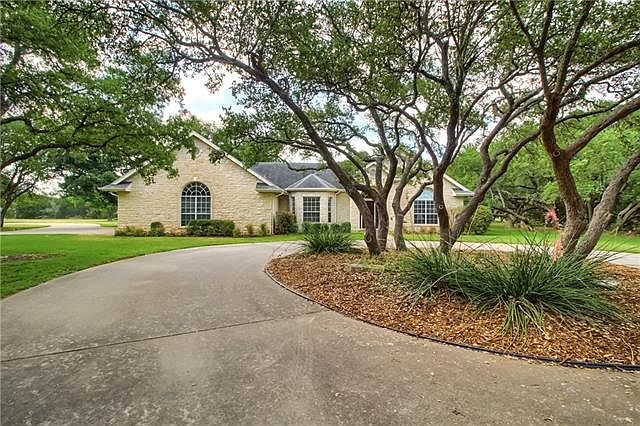 Picturesque, park like setting w/ mature oak trees on 5.96 acres. Great layout w/ single level living, vaulted ceilings & picture windows w/ natural light. Floor to ceiling stone fireplace. Adjacent study/living room w/ built-in bookcases & pockets doors. Glass sliding doors lead to the secluded backyard escape. Hill Country views, in-ground pool, & sand volleyball court. Rustic style game room up w/private home office, wet bar, 1/2 bath & covered observation deck. Close to shopping & Georgetown Square.