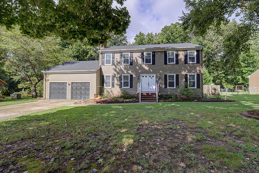 This Beautiful 4 bedroom traditional home nestled on a large lot in the desirable Tabb school zone of Yorktown has a private back yard with large deck and hot tub for entertaining. New roof, Hvac, windows, and floors were installed last year. The modern kitchen features Stainless Steel appliances, granite countertops, and instant hot water. There is also a walk in Pantry for plenty of food storage. All Major appliances convey. Buyer has choice of having carpet replaced prior to closing or getting a carpet allowance. The oversized master bedroom has dual closets and a master bath. Room next to master could be 5th bedroom, nursery or office. Best of all is no homeowners association!