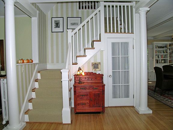 Located in Waban, this exquisite Arts & Crafts Foursquare-style residence is graced with over 5,000 square feet of elegant living space. The welcoming front porch opens to a foyer balanced on both sides with a front-to-back living room and a charming sitting room. The modern, open-concept kitchen includes an L-shaped dining area and an attached warm and inviting family room with a stone fireplace. Off the family room, spacious screened porch constructed with an Adirondack effect and an outdoor deck overlooks a bucolic level yard. A switchback stair leads to the second floor upon which includes a raised master bedroom suite with a vaulted ceiling, abundant light, and ample closets; and three other bedrooms - two en suite and one with an attached study. The third floor is an idyllic teen suite with a full bathroom and a sitting room. The lower level, with direct outdoor access, offers a full kitchen, bathroom, and recreation/exercise room. This property is in the Angier school district