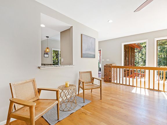 Beautiful contemporary home set on 2 private acres within the Chapel Hill school district, with county taxes and only 10 minutes from down town Carrboro and Chapel Hill. The home has a septic permit for 3 beds and is set in the peaceful and tranquil Wolfs pond neighborhood. Features include large contemporary living room with a wall of windows which gives an abundance of light throughout the living/dining area. Stunning kitchen with granite worktops and dining nook. The spacious master bedroom has a private deck overlooking 2 tranquil acres of woodland. There are 2 further bedrooms are on the main level with hardwood floors. The lower level hosts a large den with movie projector with Bonus space,Flex room and sitting room/office. Other features include, a large screened-in porch, beautiful decking, an oversized 2-car garage and an expansive unfinished attic on the 3rd floor giving plenty of storage and potential to create further living space. Outside there is a large fenced in yard with a 100ft zip line! This house has a peaceful setting with everything Chapel Hill/Carrboro has to offer just a stones throw away.