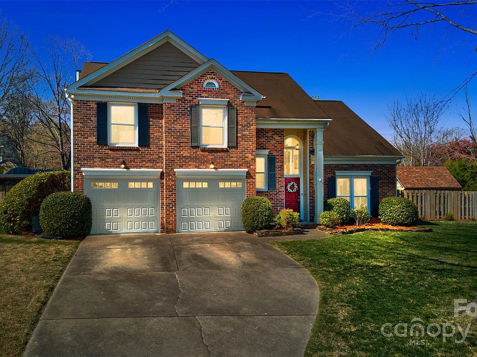 Lovely four-bedroom three bath two story home on a cul-de-sac in the Franklin Grove Community conveniently located to shopping, restaurants and downtown Mooresville. Over the years the original owner has renovated the kitchen with granite countertops, amazing built in bar with beverage frig, gas log fireplace, heated In ground salt water pool and spa and hardwood floors over the entire first floor. All bathrooms have been upgraded and all rooms in the house have fresh paint. The yard is well landscaped, the backyard is fenced with a large patio and covered pergola where you will spend many hours relaxing by the pool. Yard includes a new 10 x 12 spacious shed for lawn, garden and pool toy storage. Walk to Bellingham Park just a half mile away for baseball, tennis, kiddie playground, soccer and walking trails.
