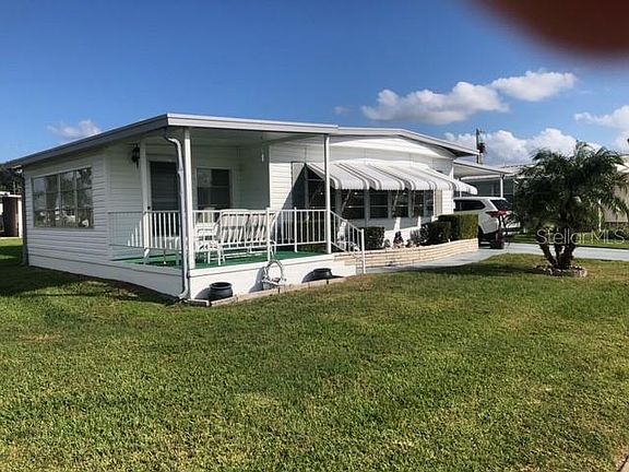 Double Wide Home on Corner Lot where you own the land. Beautiful freshly painted interior featuring some furnishings for your new Florida home. Great livability in the spacious living room with curved windows in the front and an adjacent dining "L". Sliders lead from the living room to the bright cheerful Florida room. Good sized Master bedroom with built-in features and an ensuite bathroom plus your own private entrance. Nice sized second bedroom and hall bathroom make it easy to have guests. Very convenient breakfast bar with newer counters also installed in the kitchen. Two storage sheds; one includes washer/dryer which is included in the offering. Beyond just a great design flow this home has a brand new air conditioning system, newer windows with the exception of windows in the front living room and newer vinyl siding. Of course all is in the location of Tidevue, one of the best kept secrets in Manatee County. Owner managed HOA has insured reasonable fees of $38 monthly. All the amenities are kept in pristine condition. Here you'll find immaculate pool, Baci court, Shuffleboard court, library, huge hall for many functions, pool room, exercise room, laundry and two parks just to mention a few. This could be your dream Florida home; take a peak you will love it.