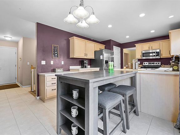 Location location location! The list of "new" includes all exterior - roof, siding, gutters, fascia, garage door and opener, lighting and some windows.. and more! This floor plan is sure to impress! The kitchen is open into an eat-in dining area/great room (that features a soaring vaulted ceiling). The second level overlooks that great room which includes a convenient gas fireplace. Living room, formal dining room, half bathroom and laundry room also located on the main level. Love being outside? This fully fenced, private yard features a gorgeous deck, patio and storage shed. The master bedroom features vaulted ceilings, large walk-in closet, and master bathroom with dual sinks. Finished lower level includes built-in shelves, office space, lots of storage, a full bath with 6' jacuzzi tub and cozy wet bar station.