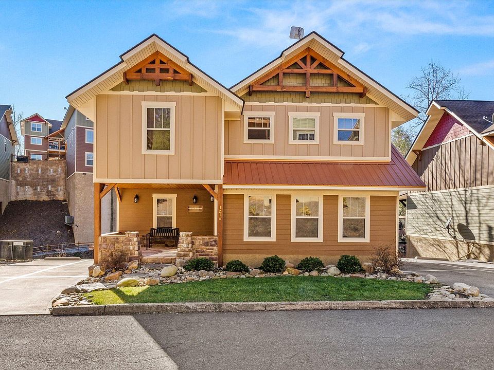 This is Splash Mansion! An Upscale Mountain Cottage Retreat located just off the Craft Trail in Laurel Estates at the Glades Community of Gatlinburg, Tennessee! This stunning cabin has 4-bedrooms, 4-full bathrooms and 2-half baths and it can easily accommodate 10-12 guests. Splash Mansion has it all, including an INDOOR SWIMMING POOL!!! There is easy access and plenty of parking too. As you enter on the Main Level take notice of the Open-Concept living space which is great for entertaining large groups of people. The Vaulted Ceilings and Large Windows let in plenty of light. The spacious living area features a Floor-to-Ceiling Stone Fireplace, and there is a spacious deck on this level with Outside Fireplace, BBQ Grill, Big Round Table and plenty of seating. Additionally there is a TV on this deck mounted over the fireplace so you and your guests can watch a Ballgame or be Entertained while Grilling Out!! This level features an enormous Gourmet Kitchen that is fully equipped with top-of-the-line appliances, Granite Countertops, and lots of cabinets. The Kitchen is sure to Impress. There is a huge bedroom on the main level with a Stunning Double Sided Rock Fireplace that you can enjoy from the bedroom side or while taking a private bubble bath on the other side in the Large Jacuzzi Tub!! This bedroom also features a full bathroom with double vanity sinks, and a huge walk in tiled shower. On the main level is another half bath that is very convenient for guests. Upstairs you will find a large gaming area with Pool Table, Air Hockey Table, and Arcade Game and additional seating. On this upper level there are 2 other spacious bedrooms each with their own large private bathrooms! When you go to the downstairs area, you will discover the Large Heated Indoor Swimming Pool that guests can enjoy YEAR ROUND!! There is another half bath on this level near the swimming pool, as well as a Microwave and Mini-Fridge. The Entertainment doesn't stop here though. Guests are sure to enjoy the Private Movie Room with Big Screen TV and seating for 9-10 people!! Step just outside onto another huge deck and you will discover your own Private Oasis! There is a bubbling Hot Tub for you to Relax in and unwind. Guests will also love the private Dry Sauna on this level !! This Mountain Cabin is situated in the much sought after Laurel Estates Community which includes a neighborhood Outdoor Swimming Pool with Clubhouse, and Outdoor Fire Pits!!! You may never want to leave! However, if you do decide to enjoy other activities such as dining at Ole Red's, The Park Grill, Anakeesta Adventure, or the Gatlinburg Skywalk, you are less than 10 minutes away! Location, Location, Location!!!