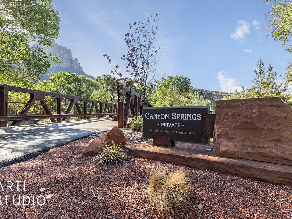 The most sought after neighborhood near Zion National Park. In the heart of Springdale, yet nestled across a charming bridge in a private nook the tourists don't even know exists! This is a unique opportunity to live amongst nature in all it's glory in the shadow of the most beautiful landscape on earth. Sitting on the patio has never featured a show quite like this! There is a $2000 HOA assessment due this year. Please review HOA Budget.