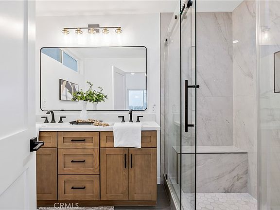 Step into a beautifully redesigned modern home where clean lines, natural light, and thoughtful craftsmanship come together seamlessly. The first-floor primary suite—with dual closets and a spa-inspired en-suite bath—adds comfort, accessibility, and everyday luxury, making the layout ideal for all ages. This fully remodeled residence features paid-off solar, an open floor plan, high ceilings, and a spacious kitchen anchored by a striking waterfall island and sleek grey-and-gold accents. New flooring, upgraded fixtures, and contemporary finishes continue throughout, leading to an inviting upstairs living area and additional bedrooms.
