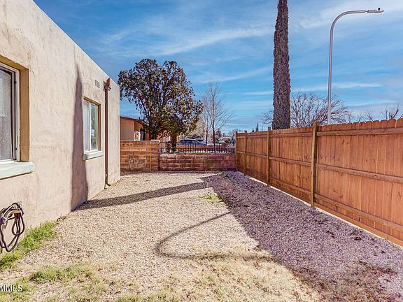 Charming 3-bedroom 2 bath home centrally located in the heart of Las Cruces. Manyupgrades. The kitchen has custom wood cabinets with glass accent door and amplestorage. It has Corian countertops with decorative backsplash tile and stainless-steelappliances. The home has two great living spaces. One with its own entrance, pelletstove and a skylight. The kitchen has an adorable barn door to the family room. Thelaundry room has great storage and would make a great pantry space. Updatedbathrooms. The backyard is enclosed with an east facing covered entertaining patio.The shop in the back is fully equipped with electricity and lighting. Fresh elastomericcoating on the roof. The yard is xeriscape in the front yard with a new wood fence anda luscious green back yard. Digital enhancements were added to the yard photos to show the summer grass. Call for a showing today!