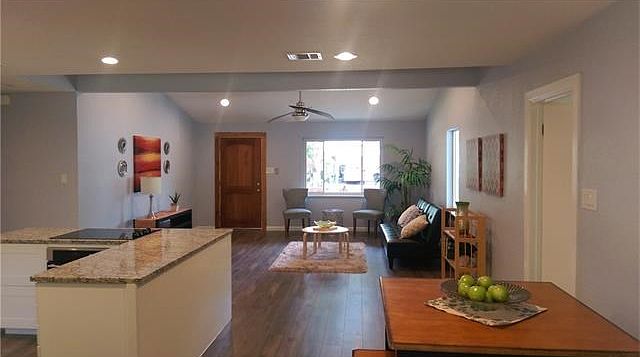 Practically a New Home! Almost everything in this home is new! This was a complete remodel. Open floor plan with vaulted ceilings and recessed LED lighting throughout! Hardwood high grade laminate, bamboo tile showers, with natural rock flooring, main shower with 2 shower heads!!! New carpet in bedrooms, huge great room or master you decide. One of the biggest back yards, you will know when you see it! One of the best and growing locations near Mueller or not far from downtown. You must see this home!
