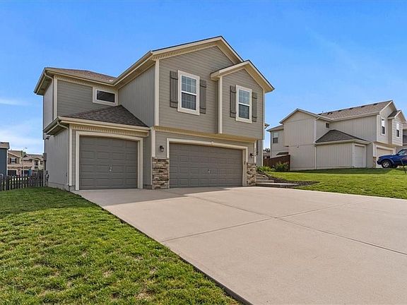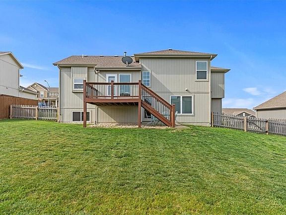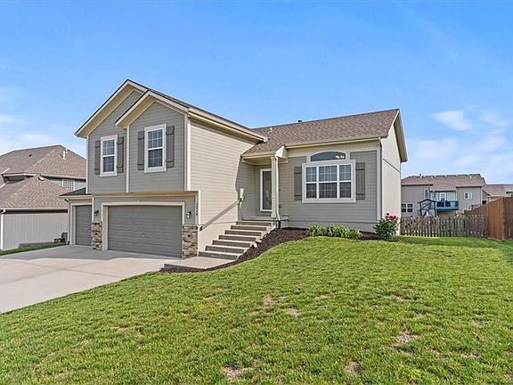 GET READY TO FALL IN LOVE! Beautiful Atrium Split in Eagle Glen, updated nicely with plenty of space: 4 bedrooms, 3.5 baths, super close to schools and shopping in the heart of Raymore. Instantly welcoming! The large living room feeds into the kitchen/dining room, all appliances stay, new LVP flooring looks great & so durable, corner pantry, lots of natural light a great place for plants! HUGE family room on the lower level with a fireplace and access to the backyard. Mudroom with boot bench, half bath and down to the 4th bedroom with an attached full bath so perfect for guests or big kids. The Master Suite is awesome; tons of space, two big closets, spa-like bathroom with double vanities, shower and a jetted tub. Two additional large bedrooms and a full bath and laundry upstairs - the washer and dryer stay. Just all around cute! Don't forget to check out the large backyard with access from the deck and lower level patio so it's perfect for those summer get-togethers. Huge 3 car garage large enough for all your toys plus plenty of storage. Eagle Glen Subdivision has lovely walking trails and a pool plus an easy walk to the Elementary School. WELCOME HOME!
