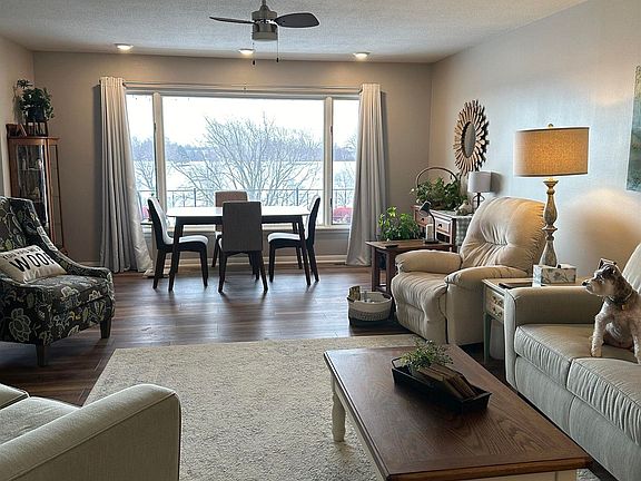 This upper level two bedroom two bath condo offers a spectacular view of the Nishna Hills Golf Course & beyond. This spacious home has over 1200 square feet with fresh paint throughout and new flooring (except bedrooms). Has a lovely kitchen with beautiful quartz counters, large island and all new appliances including a stackable washer/dryer. There are sliders to an inviting deck and detached one car garage. Call a Realtor to see this move in ready condo before it's gone!
