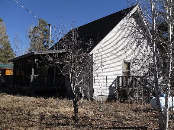 Enjoy great views and walk right out the back gate and into the National Forest! This 3 bedroom, 2.5 bath cabin is the one! Located in Pinewood and on a quiet side street, it has the floorplan, setting and storage you need. The great room has a soaring vaulted ceiling and a wood stove to take the edge off that crisp mountain air. There is a guest suite on the main floor and also a large primary suite up stairs. Wood laminate flooring stretches throughout this wonderfully appointed cabin. The property is fully fenced front and back providing unmatched privacy and parking. The 2 car garage is oversized and has a roll-up rear door providing great yard access. Solar panels mean this cabin has low to no electric bills. If you desire privacy and forest access, don't miss the virtual tour!