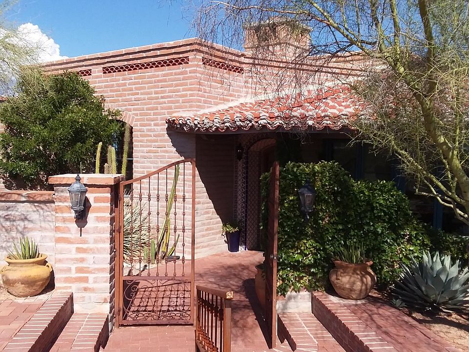 Beautiful Spanish Colonial Brick Adobe home with 3 bedrooms with access to patios, 4 fireplaces and lots of outdoor living space, brick on sand flooring throughout, several sets of french doors, a large Master bedroom and sitting area with spacious bathroom with seperate vanity and closet space, french Style kitchen with city and mountain views nicely tucked in a cul de sac.