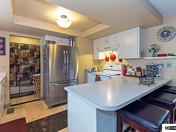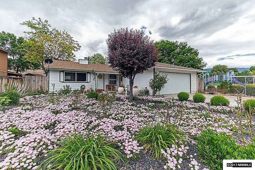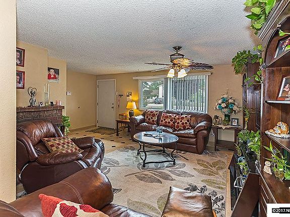 Great location in Huffaker Hills, this single story family home provides views and is right next to the park. Tile flooring highlights the welcoming floor plan which creates a family space between the kitchen, living and dining room. The kitchen looks out to the backyard and has white cabinetry and breakfast bar. The guest bathroom has been updated with tile flooring, walls, and vanity. The backyard has a large storage shed and has views of the hills, mountains and park.