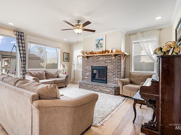 This stunning Kuna, Idaho home offers elegant interior details and exceptional functionality throughout! Step inside to find beautiful crown molding and wainscoting, adding a touch of sophistication, while the main level offers a private suite with its own bathroom, perfect for guests or family members seeking their own space. Upstairs, enjoy breathtaking views from multiple rooms, and explore the endless possibilities with numerous bedroom spaces. The 6th bedroom is currently utilized as a versatile bonus room or den, offering even more options for your lifestyle. Outside, discover a fully equipped she-shed or optional office space with full electrical, providing a quiet retreat for work or hobbies. The property boasts excellent storage throughout, including a space for RV parking and other hobbies/recreational toys. Located conveniently near local schools and parks, this home combines comfortable living with an unbeatable location!