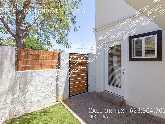 MOVE-IN SPECIAL: Take HALF-OFF off your first month's rent! *Photos are of a similar floor plan. Welcome to our fabulously upgraded 2-bedroom, 1.5-bathroom townhouse located 1214 at Portland Street in the thriving Roosevelt Rows Arts District! This modern townhouse offers a range of amenities that will surely enhance your living experience. The entire exterior of the property is being renovated with new landscaping, new paint, new pavement, with colorful new murals coming soon. The well-equipped kitchen has been completely renovated, complete with new stainless steel refrigerator, new stainless steel stove, and a mounted microwave. The convenience of an in-unit washer/dryer ensures that laundry day is a breeze. Enjoy the privacy of your own backyard/patio, with a small patio perfect for grilling or enjoying the sunshine. The townhouse features luxury vinyl plank flooring, adding a touch of elegance to your living space. Stay cool during the warm Arizona summers with ceiling fans in the bedrooms and living room, providing a refreshing breeze throughout. Located in a desirable area of Phoenix, this townhouse offers easy access to a variety of dining, shopping, entertainment options, as well as all of the amenities that downtown Phoenix has to offer! 1214 E Portland St also comes with off-street parking. Whether you're looking to explore the vibrant area or simply relax in the comfort of your own home, this townhouse is the perfect place to call home. Security deposit based on approved credit Cats and small dogs OK with deposit and pet rent com!