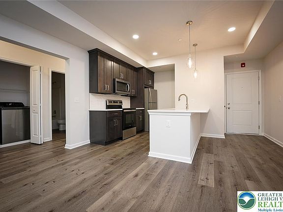 Offering 6 or 12 month lease! 6th month lease at increased rate. Modern-luxury 2-bedroom 2 full bathroom available #304 (3rd Floor) now. Equipped with state-of-the-art amenities; luxury vinyl plank floors, custom kitchen soft close cabinets/drawers, quartz counters, tile backsplash, stainless steel appliance package; full size refrigerator, self-cleaning oven, dishwasher, microwave. Ample room sizes, view of South Mountain, individual laundry w/ Samsung washer & dryer. Living room features walk out patio/balcony. Built in monitoring system and key less entry. High efficiency heat pump w/ central air. Off-street parking with EV charging available. Proximity to Downtown Bethlehem, walking distance to shopping, dining. Tenant responsible for electric, quarterly water/sewer. Lawn care, snow removal, trash collection included in rent. Applicants must have 685+ credit score and 2.5-3x in income per rent. No pets allowed.