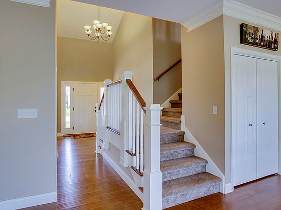 Exceptional quality throughout is what you will find in this 4 bedroom home. Double sided staircase greets you at the entrance. Crown molding & gleaming wood floors detail the main level. French doors lead you from the living room into the family room with a striking fireplace. You will appreciate the kitchen with a lovely view of the lake, s/s appliances, center breakfast bar, granite counters & custom backsplash. Laundry is off the kitchen with a sink & cabinets. The upper level is outfitted with 4 bedrooms. Tray ceiling, walk-in closet, dual sinks, whirlpool & walk-in shower show off the master suite. The full basement is waiting for your final touches to add more outstanding living space. Evenings can be spent admiring the lake views from your back patio. One of a kind home