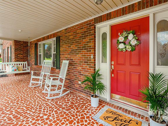 Discover the allure of this brick ranch home, with a welcoming covered front porch & irresistible curb appeal. As you step inside, you're greeted by an open floor plan flooded with natural light. The family room features a brick fireplace & thoughtfully crafted built-in shelving, offering a blend of functionality & charm. The kitchen includes SS appliances, a farmhouse-style sink, and a kitchen island/breakfast bar all complemented by a tasteful tile backsplash. The breakfast area in the kitchen boasts a large bay window, providing a serene backdrop for your morning coffee. Barn doors lead to a spacious walk-in laundry room, complete with cabinet space. Retreat to the primary bedroom, where an ensuite bathroom awaits, with a dual vanity & an oversized shower. Step outside to the flat, open backyard with a patio, perfect for hosting gatherings or just relaxing!