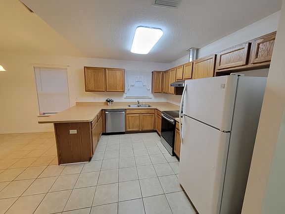 Spacious clean fully tiled home with 3 BR / 2BA / 1 car garage. Open floor plan. Kitchen has a pantry, dishwasher, stove/oven and a fridge.