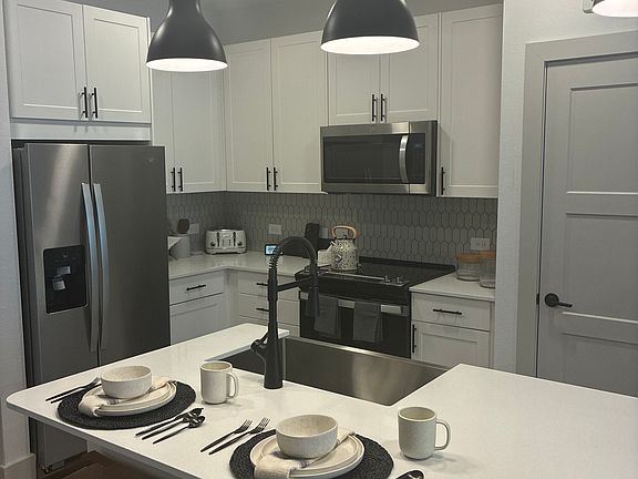 Experience upscale apartment living designed for comfort, convenience, and connection. This modern community offers thoughtfully designed one-, two-, and three-bedroom homes with open layouts, stylish finishes, and everyday functionality. Apartment interiors feature contemporary kitchens with quartz countertops and stainless steel appliances, spacious walk-in closets, in-unit washers and dryers, and private patios or balconies for added outdoor space.