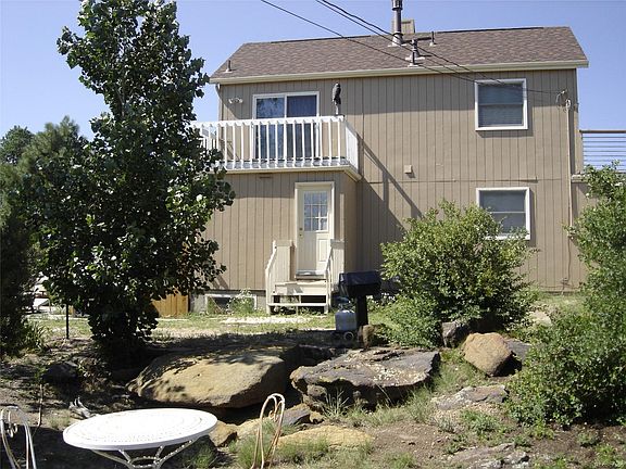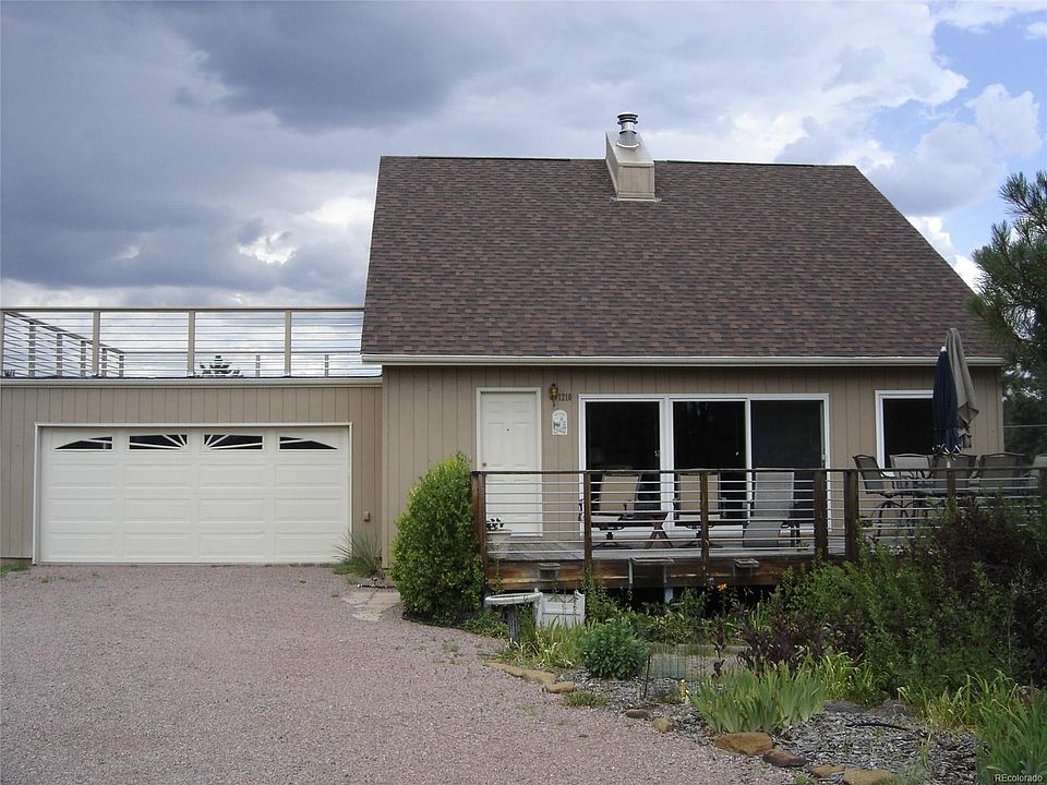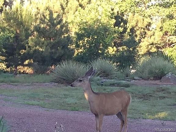 Unique home; xeriscaped acre with rock outcroppings, boulders & many trees. Main lvl living w/master bedroom & adjacent bath. Light & bright, lots of windows. Walkout from great rm thru south-facing 12 ft sliding glass door onto 10x24 deck. Pikes Peak & surrounding mtns visible from kitchen, great rm, front and garage decks. Has fish pond w/waterfall, RV parking, large dog enclosure; Rear door affords backyard access and convenient RV loading. Windows are LowE by Andersen. Open balcony overlooks great rm. From balcony, the deck over the garage is accessed via a floor to ceiling window which could easily become a doorway. Panoramic VW of mtns. Partially finished bsmt offers bedroom suite with bath and walk-in closet. House has cedar plywood siding and is move-in ready. All outdoor patio furniture (several sets around backyard) and glider swing stay with the house.