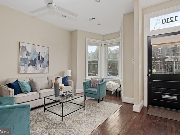 1210 G St NE is a classic and elegant Capitol Hill row home that welcomes you with its charming character, soaring ceilings, and thoughtful upgrades. Spanning approximately 2,022 total square feet, this 3 level home showcases 4 Bedrooms and 3.5 Baths, an open floor plan, and incredible outdoor spaces. The Main Level has a stunning 10’1” ceiling and begins with a Living Room with an adjoining Dining Room. The bright and airy Kitchen opens to the Screened Porch that was recently added in 2021, offering an entertaining space that may be used for most of the year. An expansive fenced in Patio is a wonderful addition that is perfect for an urban garden, grill, and outdoor lounge/dining area. The Upper Level has 3 Bedrooms and 2 Baths including a Primary Bedroom with an En-Suite Bath and 2 closets. The finished Lower Level encompasses a sizable Family Room and a Bedroom Suite with a private Bath. There is a separate rear entrance to the Lower Level. This home has a recently installed (2021) Solar Energy System which significantly reduces the electric bill as well as provides income-generating SRECs. 1210 G St NE is in a superb location that is mere blocks to a plethora of restaurants, services, and shops. Set just one block south of the H Street Corridor, this exciting neighborhood is full of vibrant entertainment spots and popular eateries. The H St Streetcar services the entire corridor down to Union Station, where the Metro and Amtrak trains are available. The neighborhood is sprinkled with green spaces, including Lovejoy Park, Kingman Dog Park, and Lincoln Park.