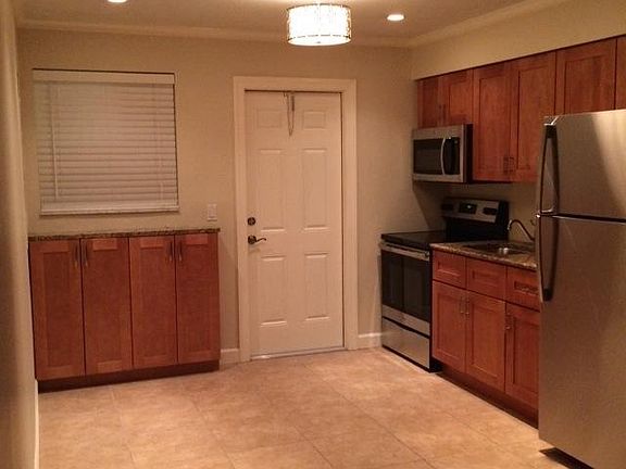 This recently renovated apartment features; 2 bedrooms and 1 bathroom, Granite Countertops, Cherry Cabinets stainless steel appliances (Refrigerator w/Ice Maker, Stove and built in Microwave) and a front loading washer and dryer. Also; Central A/C, tile flooring throughout, crown molding, lots of natural light - 7 windows with plantation blinds and hurricane shutters for all windows. New roof. Patio in front. 1 private parking space and additional street parking. Walk to City Place, Howard Park, Convention Center, Kravis Center, Norton Museum and the Armory Arts Center. Close to to the Tri-Rail & Brightline Train Stations and I-95. Owner pays maintenance, Lawn & Landscape. Resident pays electricity, water and cable/internet. Renters insurance required.