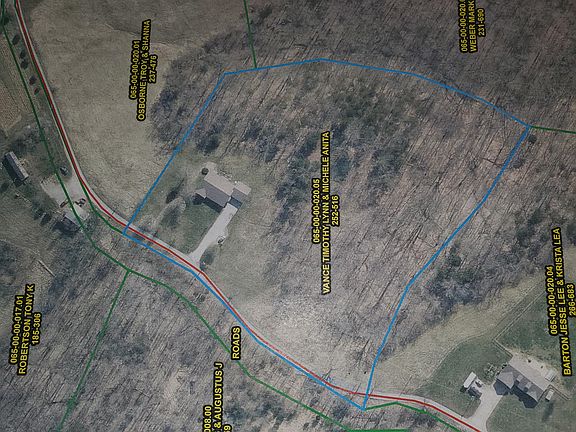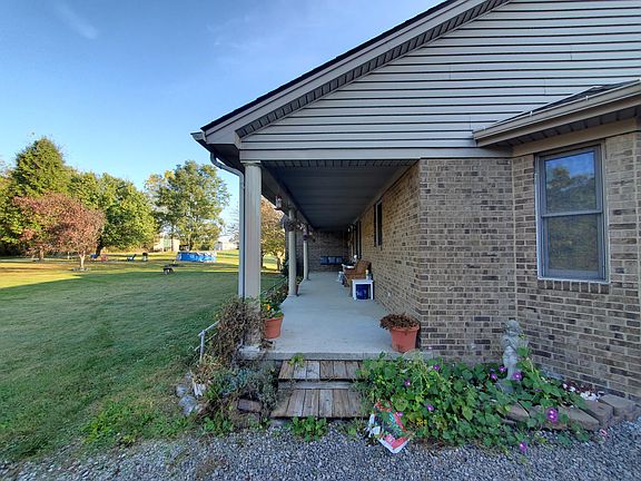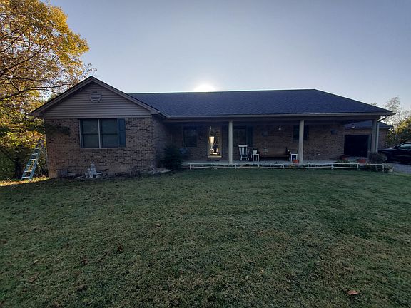 5.23 acre wooded lot, 3 bedroom, 2 full bath, 1 half bath, brick veneer ranch home on a full unfinished walkout basement, 2 car garage, a spacious front porch, a deck in the backyard, lots of wild life in the woods behind the house (could hunt off the back deck), follow the direction provided for you first trip to the property (the GPS will likely take you to a road that a new bridge is being built), there is a huge cistern under the garage that has never been used, home sold as-is inspections welcome, Take 460 west from Georgetown to 227 take a right, go to Claxon Ridge Rd (607) take a left, go to Herman Green Rd and take a left to the property.