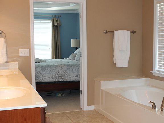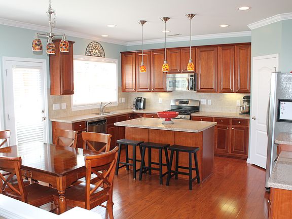 Spacious home with open floor plan and many upgrades. Hardwoods on 1st floor, tiled bathrooms and laundry. Extensive molding throughout home. Large 2-story FR w lots of windows. Kit with granite, gas range, large eat in area, large island with seating for 3, desk area, 42 in cherry cabs, SS appliances. Master on second floor with spacious bath, his and hers walk in closets.