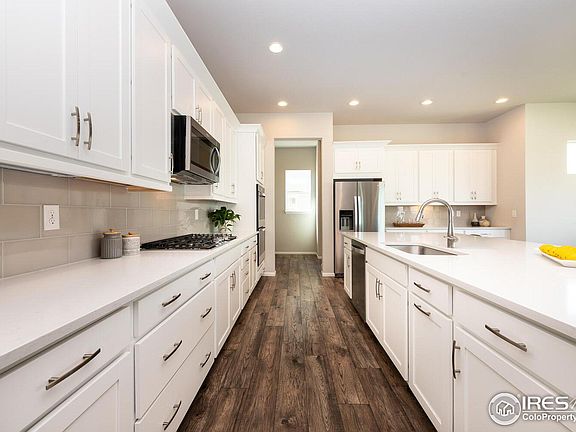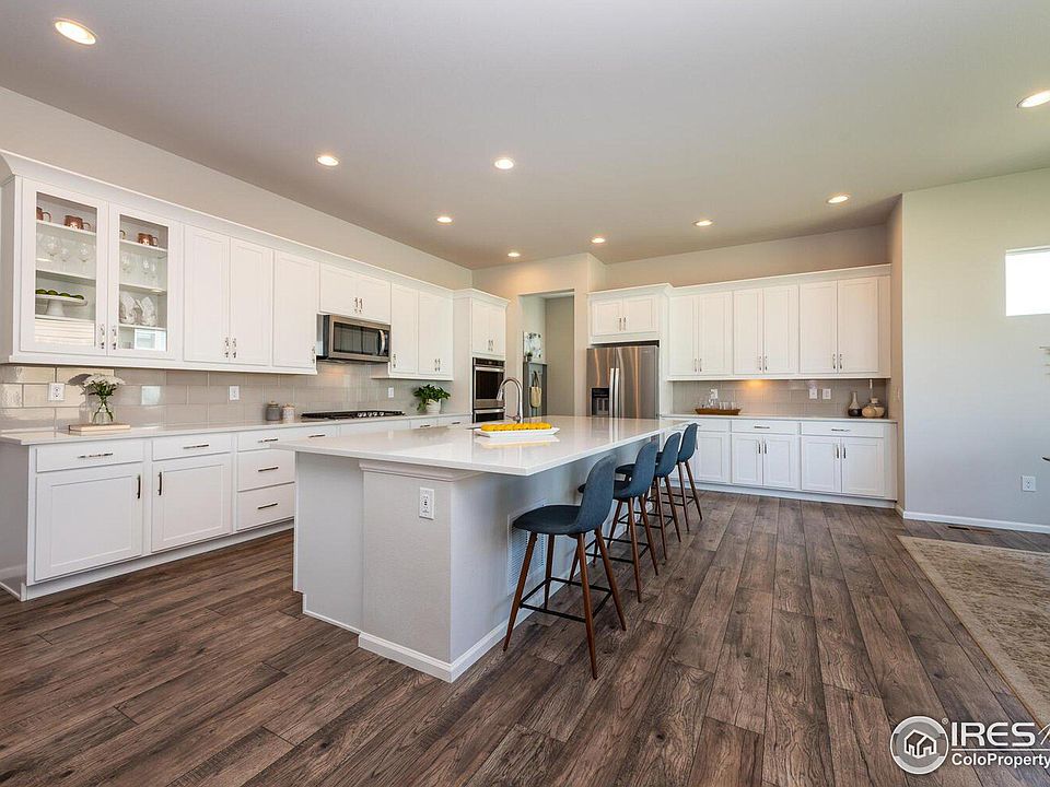 Amazing 2-story home located in the highly desirable Flatiron Meadows neighborhood. The open concept main level features an abundance of natural light while the breathtaking kitchen offers white, shaker-style cabinets, SS appliances, plenty of storage/counter space, expansive island with barstool seating. Integrated into the kitchen is a dining room flanked by plenty of windows, expansive living room with featured fireplace & a walk-in pantry just off the mudroom. The covered patio is the perfect place to unwind. A spacious room right off the entrance makes for the perfect office or guest room with full bath. The upper-level features 4 bedrooms including the primary suite equipped with an oversized luxury dual shower, raised vanities & walk-in closet. The unfinished basement is open to endless possibilities: workout space, craft room, extra storage or even an extra bed/bath. Wonderful location feeding into Meadowlark K-8 within the Boulder Valley School District and just 25 min from Denver, 15 min from Boulder and Lafayette. Head to the quaint Old Town in Erie to enjoy the local eateries, coffee shops and parks.