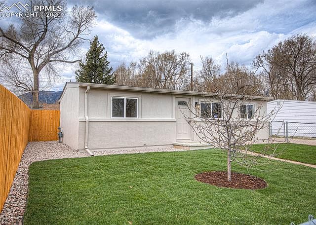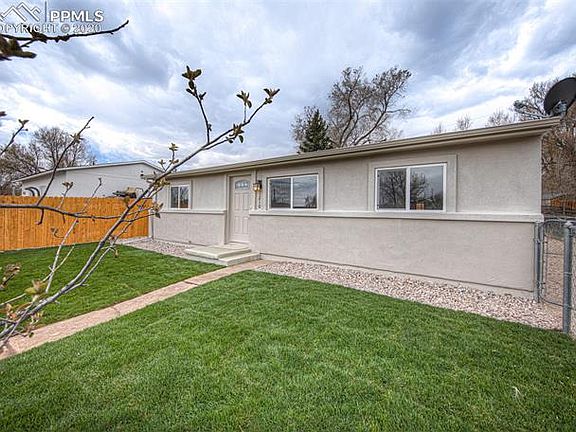 Super cute ranch style home, 3 bed, 1 full bath, top quality remodel with all new landscaping, new stucco, new roof, new fencing, upgraded kitchen cabinets with granite counters, brand new furnace, upgraded carpet and tile flooring, New upgraded appliances, kitchen walks out to large, partially fenced in back yard with new sod and utility shed, large driveway for off street parking, beautiful fenced in front yard with fresh sod and newly planted trees ! This house needs nothing and is turn key ready for it's new owner. Conveniently located near schools, shopping, parks, Ft Carson and South Academy corridor.